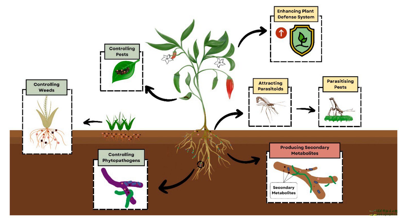 生物胁迫(包括害虫侵袭、病原微生物引起的植物病害以及杂草竞争)显著限制了作物的最佳生产力。研究表明,利用有益微生物可增强植物对这些胁迫因子的耐受性。大量实验室研究已证实微生物次生代谢产物作为生防制剂在防治害虫、病害和杂草方面的有效性。然而,当前仍面临一个关键挑战:如何确定田间应用的微生物是否能产生与实验室观察结果相同的次级代谢产物,以及其效果是否与实验室相当、更优或更差。本综述通过比较实验室与田间环境,系统考察了微生物制剂在产生增强植物生物胁迫耐受性的次级代谢产物方面的相对有效性。