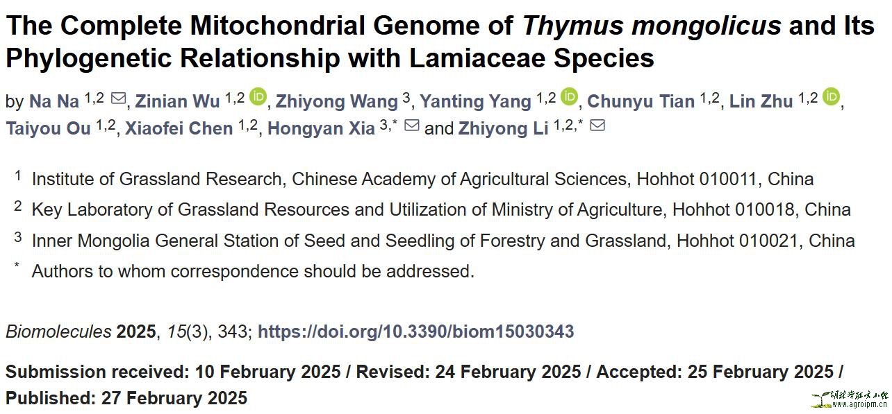 The Complete Mitochondrial Genome of Thymus mongolicus and I