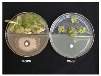 Certain plant growth-promoting rhizobacteria (PGPR) elicit induced systemic resistance (ISR) and plant growth promotion in the absence of physical contact with plants viavolatile organic compound (VOC) emissions. In this article, we review the recent progess made by research into the interactions between PGPR VOCs and plants, focusing on VOC emission by PGPR strains in plants. Particular attention is given to the mechanisms by which these bacterial VOCs elicit ISR. We provide an overview of recent progress in the elucidation of PGPR VOC interactions from studies utilizing transcriptome, metabolome, and proteome analyses. By monitoring defense gene expression patterns, performing 2-dimensional electrophoresis, and studying defense signaling null mutants, salicylic acid and ethylene have been found to be key players in plant signaling pathways involved in the ISR response. Bacterial VOCs also confer induced systemic tolerance to abiotic stresses, such as drought and heavy metals. A review of current analytical approaches for PGPR volatile profiling is also provided with needed future developments emphasized. To assess potential utilization of PGPR VOCs for crop plants, volatile suspensions have been applied to pepper and cucumber roots and found to be effective at protecting plants against plant pathogens and insect pests in the field. Taken together, these studies provide further insight into the biological and ecological potential of PGPR VOCs for enhancing plant self-immunity and/or adaptation to biotic and abiotic stresses in modern agriculture.