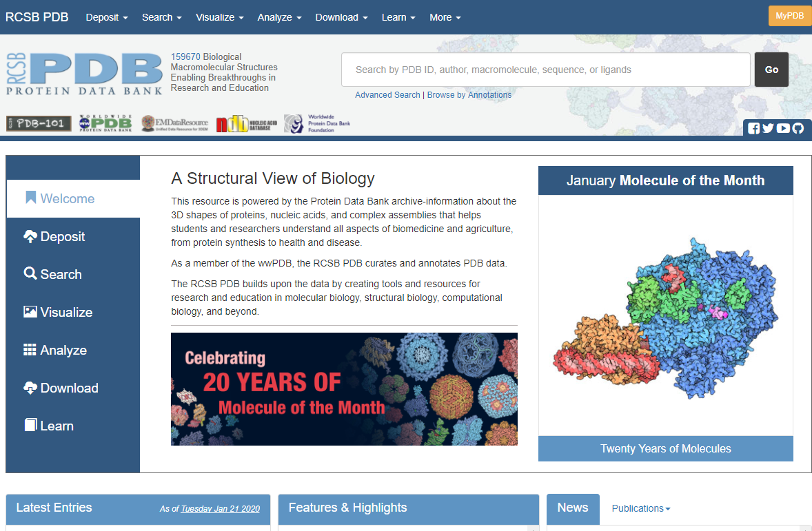 This resource is powered by the Protein Data Bank archive-information about the 3D shapes of proteins, nucleic acids, and complex assemblies that helps students and researchers understand all aspects of biomedicine and agriculture, from protein synthesis to health and disease.