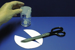 Pour solvent into the beaker to a depth of just less than 0.5 cm.