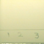 Under the line, mark lightly the name of the samples you will spot on the plate, or mark numbers for time points. Leave enough space between the samples so that they do not run together, about 4 samples on a 5 cm wide plate is advised. Use a pencil and do not press down so hard that you disturb the surface of the plate. A close-up of a plate labeled "1 2 3" is shown to the right.