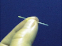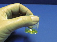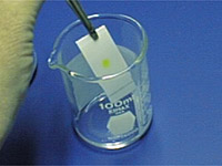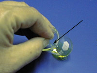 dip the microcap into solution - the arrow points to the microcap, it is tiny and hard to see