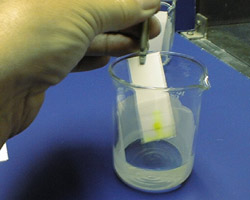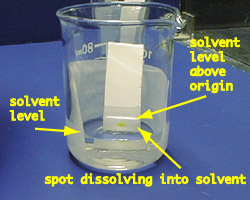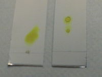 photo shows how the yellow compound is running into the solvent when lifted from the developing jar