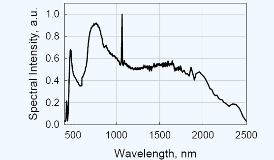 A relatively new laser source that could be used, is a high power fiber laser generating supercontinuum radiation in the 460 - 2500 nm spectral band (see figure ↓).