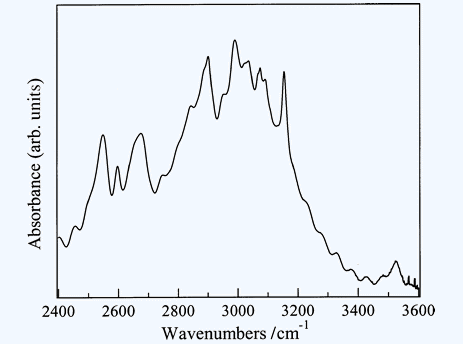FTIR spectrum of the Benzoic acid dimer recorded at room temperature 1 M CDCl3 solution. The wavelength is often expressed as some unit directly proportional to the photon energy, such as wavenumber which has a reciprocal relationship to wavelength.