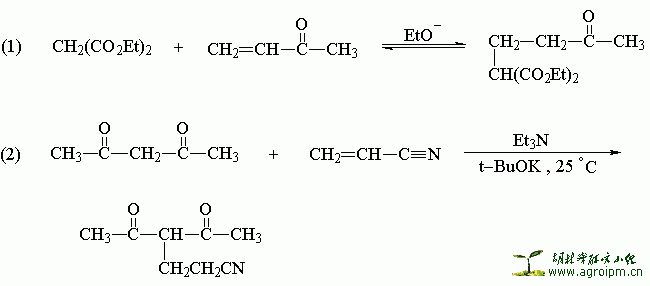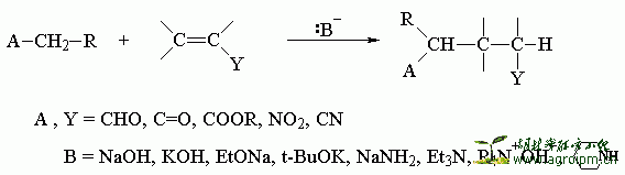 一个亲电的共轭体系和一个亲核的碳负离子进行共轭加成,称为Micheal加成: