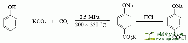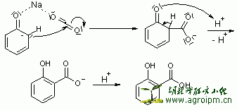 反应产物与酚盐的种类及反应温度有关,一般来讲,使用钠盐及在较低的温度下反应主要得到邻位产物,而用钾盐及在较高温度下反应则主要得对位产物: