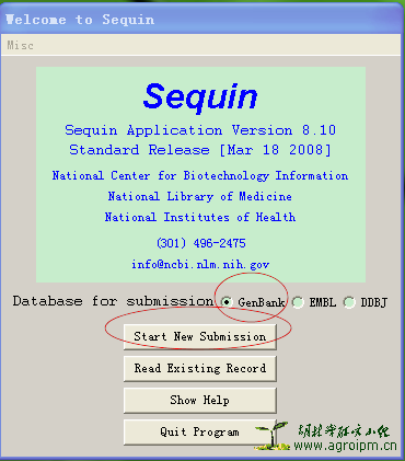 开始一个新的提交或是选择编辑已有保存的文件(Read Existing Record),用Sequin的好处就是你可以保存下来,可以随时修改。直到满意后再向NCBI提交。