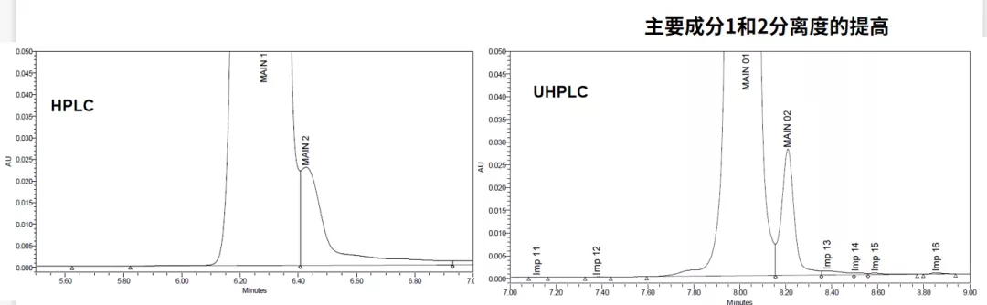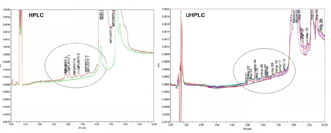 图3. UHPLC在高浓度杂质表征中看到更多信息。