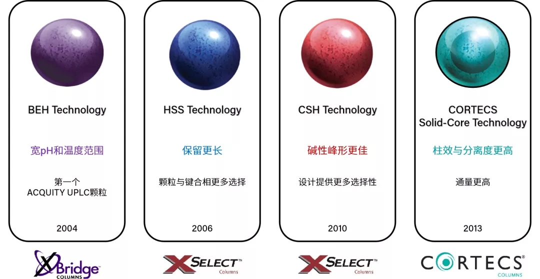 图4. Waters BEH、HSS、CSH和CORTECS平台