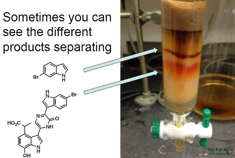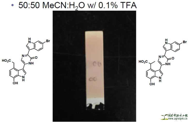 梯度洗脱过程中,可以利用正相TLC监测反应,如果爬不起来可以尝试一下EA:AcOH=200:1体系。
