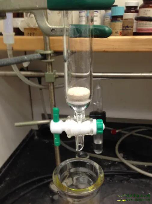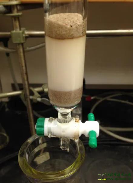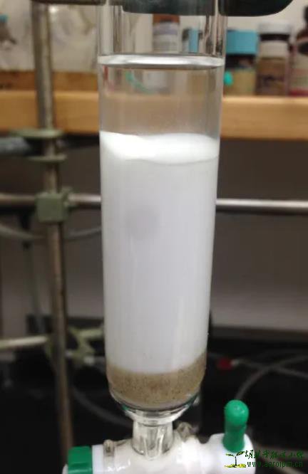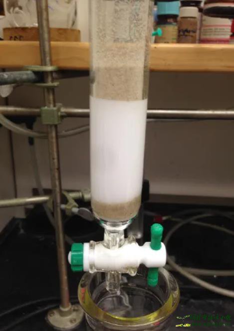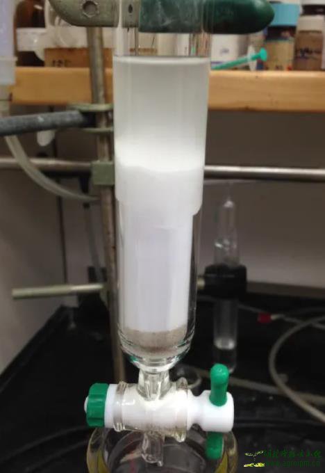 二、装入C18反相硅胶,甲醇润柱,活化硅胶,此步骤必不可少。或者将硅胶与甲醇混成匀浆后倒入柱子。