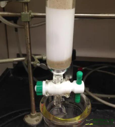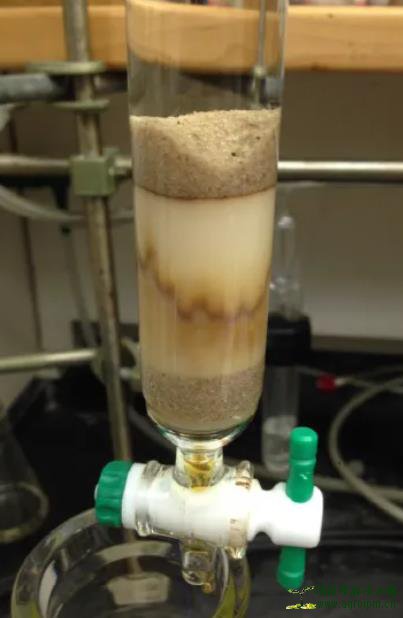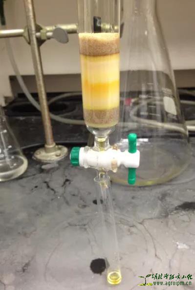六、柱层析结束后,利用甲醇冲洗柱子(直至硅胶层无色),下次备用。