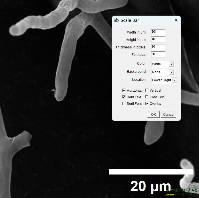 4.调用标尺菜单Analyze → Tools → Scale bar并设置参数
